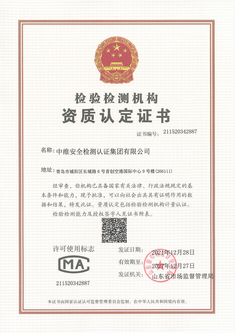 中維安全檢測認證集團有限公司(總部地址一):青島市城陽區長城路6號首創空港國際中心9號樓